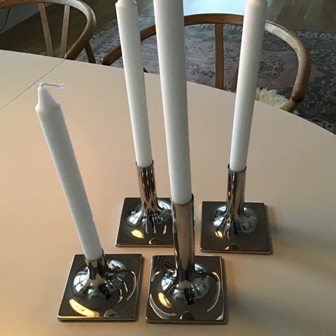 Lysestager, Stelton, 3 lysestager i stål mrk Stelton. Ø: 6 cm. H: 2x 9 cm + 1x 6,5 cm.