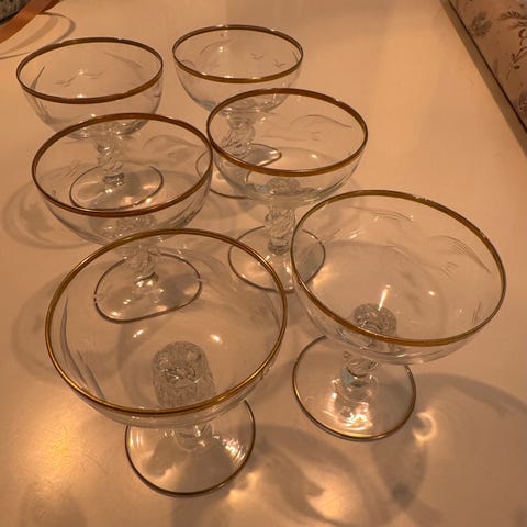 4 stk mågeglas med guldkant