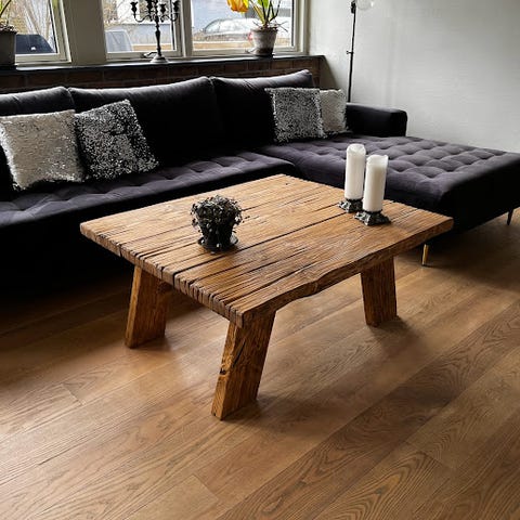 Jeg laver møbler på bestilling. Fx et virkelig lækkert sofabord i det fedeste rustikke look, som det her.