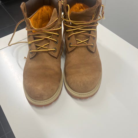 Timberland børnestøvler i størrelse 36, designet til både drenge og piger. Støvlerne har en klassisk brun farve og er lavet af slidstærkt materiale. Velegnet til daglig brug og udendørs aktiviteter. Brugt 2 gange i tørt vejr. Næsten som nye.