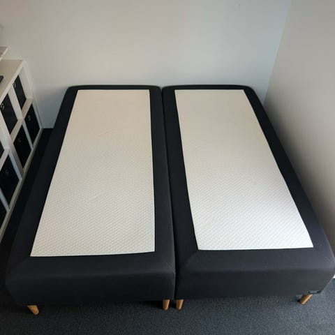 Sengene sælges fordi boxmadressene blev købt brugt i september 2025 fra et hjem hvor der har været rygning. Vi har renset dem med dampvask, og synes ikke de lukter meget, men noget rygelukt er der tilbage og vi har derfor besluttet os for at selge dem videre.