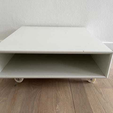 Hjul der kan dreje. 75 mm diameter. 25 mm brede. De blev købt hos Montana til montering under en lille reol.