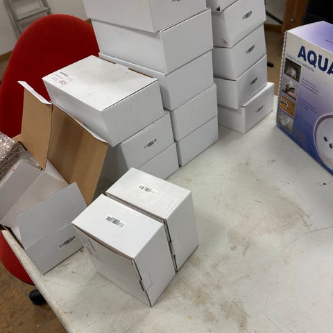 Lacur Home elektronisk vandbehandling med tilhørende elektronikstyring og kabler. Produktet er designet til behandling af vand ved hjælp af elektroniske metoder og leveres med installationsvejledning og nødvendige komponenter til montering. Har aldrig været monteret