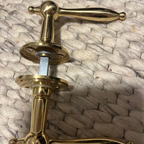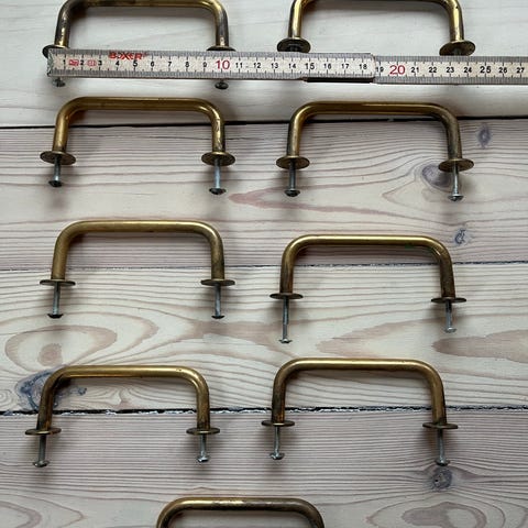 Sæt bestående af messinggreb til skuffer, låger, som kroge til håndklæder fx.