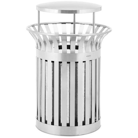 VIPP affaldsspand i rustfrit stål med sort låg. Spanden har et praktisk design til affaldshåndtering og er velegnet til brug i køkken eller andre rum.