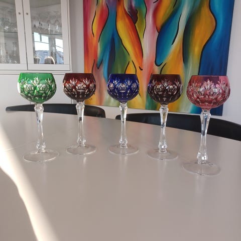 10 stk, de 6 stk er ens i højde, mønster og form i 6 forskellige farver. 4 i forskellige str. Mønster Og farver.