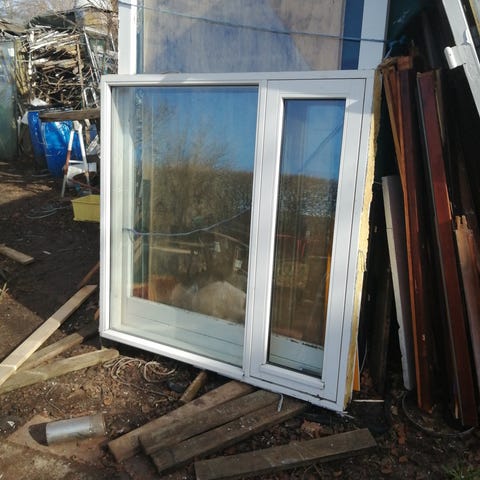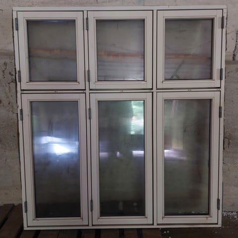 Fastkarmsparti med oplukkeligt vindue i midten.højde 212 bredde 89 cm.Pæn stand og intet råd overhovedet.