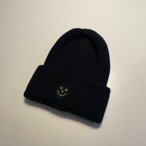 Helt ny turkis blå meget blød og varm dobbeltlags hue i ribbet strik der strækker godt og derfor passer langt de fleste
