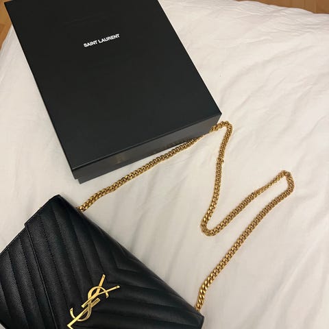 YSL skuldertaske i læder til kvinde. Tasken har justerbar skulderrem og lukning med spænder. Indvendigt findes en lynlåslomme. Tasken er sort og egnet til daglig brug.