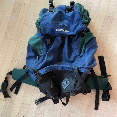 denne taske / rygsæk er lidt speciel, da den lukkes med 3 flapper. Jeg tænekr den har haft en slags speciel spejderanvendelse er en spejdertaske da man ser en spejder på logoet.