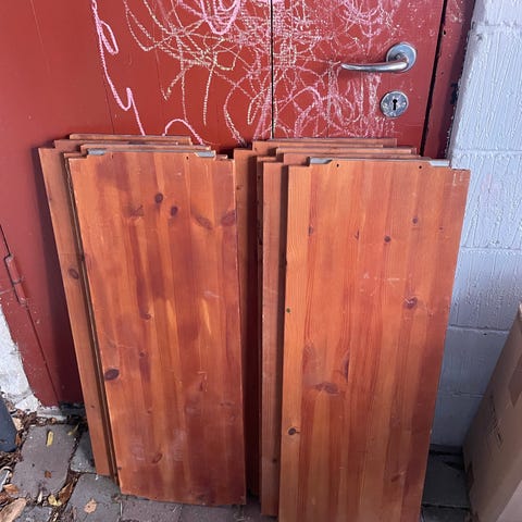 Træhylder i fyr til IKEAs IVAR-reolsystem. Mål: 42 x 30 cm. 6 stk. til en samlet pris på 200,- Nypris: 55,- stk.