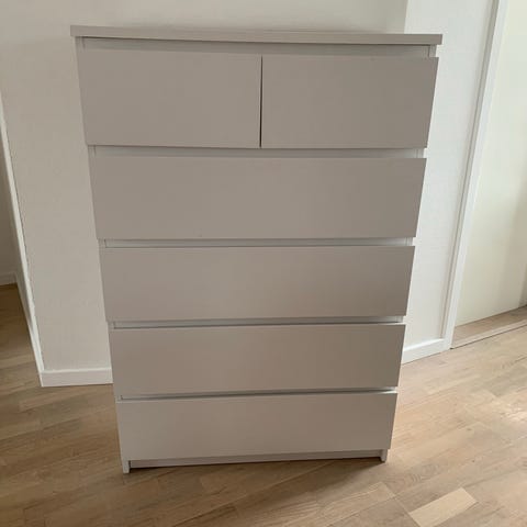 Kommode fra IKEA med spejl i toppen og smykkeskuffe med filt.