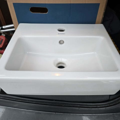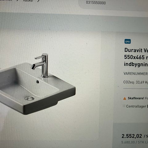 Duravit Vero 50 cm med wondergliss10 håndvask i hvidt porcelæn med tre huller.