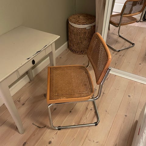 Fineste frisvingerstol sælges, fin og stram i flettet, kun øverst ved ryggen er der små afvigelser, som det ses på billedet.