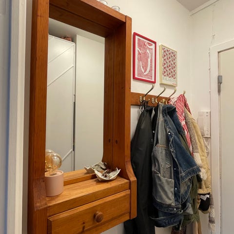 Spejl og nøgleskab i lyst træ