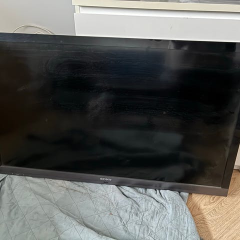 Ældre fladskærmstv med fjernbetjening til gratis afhentning. Har ridser på skærmen.