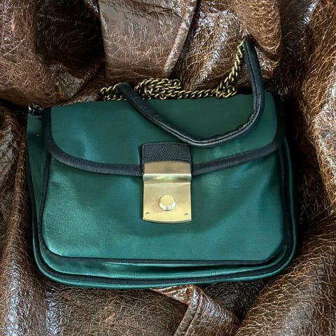 By Malene Birger taske i kunstlæder til kvinde. Tasken har et mønstret design i mørke og brune nuancer. Den inkluderer en mindre indvendig pouch med lynlås og logo. Den lille pouch sidder fast på tasken, men kan tages af og bruges separat. Tasken har to skulderstropper i læder og en åben top med en central lukning.