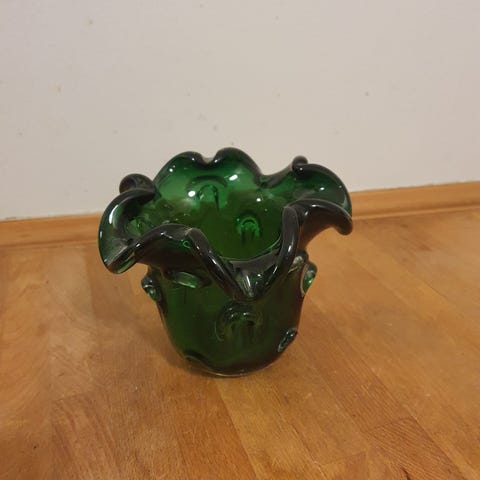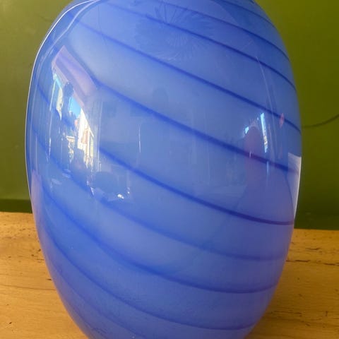 Arcchio glasvase i rosa med bølget kant og snoet mønster. Den er fra Bahne og ikke Arcchio (kan ikke finde ud af at slette det 😀). 31 cm høj. Nypris 399.