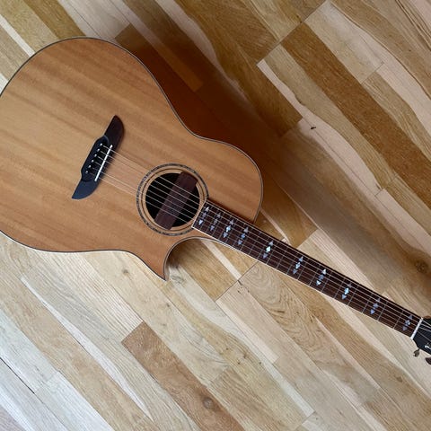 Gudeskøn akustisk guitar fra 60'erne, der har fået påmonteret en elektrisk pickup, så man kan lege med forstærker. Et super inspirerende instrument med en særegn "plucky" lyd. Kom og prøv. Byd endelig eller stil et spørgsmål