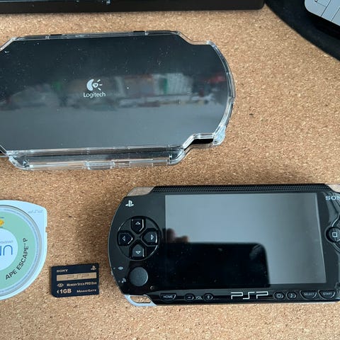 Sony PSP GO spillekonsol leveres med en beskyttende taske og oplader. Konsollen er sort og designet til bærbar spilunderholdning. Jeg har købt den d. 30 december 2025 igennem Nintendopusheren, så der er forsat reklamation på den indtil decemeber 2027.