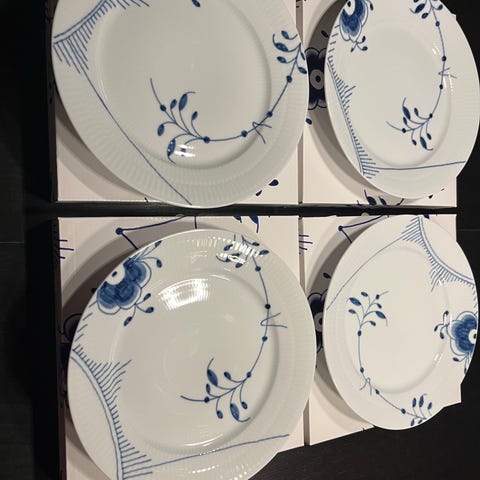 Royal Copenhagen Tallerken Blå Mega i porcelæn med blå blomsterdekoration.