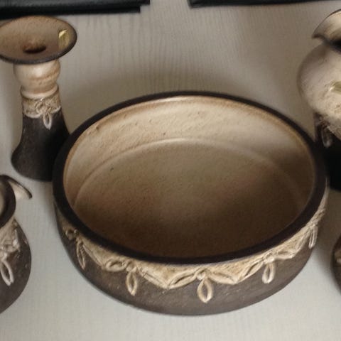 Den er fremstillet af Løvemose Keramik, som blev etableret på Langeland i 1942.
