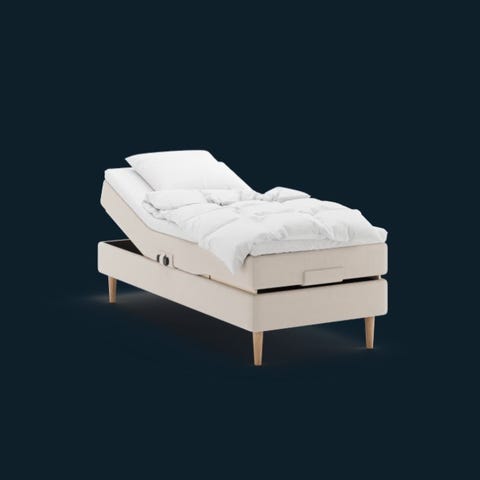 Nexus elevationsseng 90x200. Inkl. topmadras. Kun brugt få gange og fungerer perfekt. Betræk på topmadras kan tages af og vaskes. Skal bæres ud fra stueplan. Afhentes i Rødby.