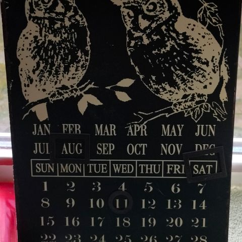 Glas kalender i lilla nuancer. Mål 80 x 80.