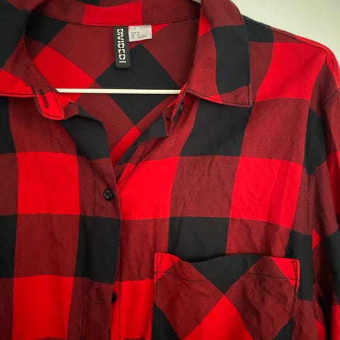 H&M skjorte i størrelse M til kvinder. Skjorten er lavet af bomuld og har en lyserød ternet farve.
