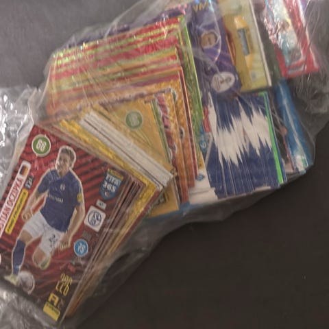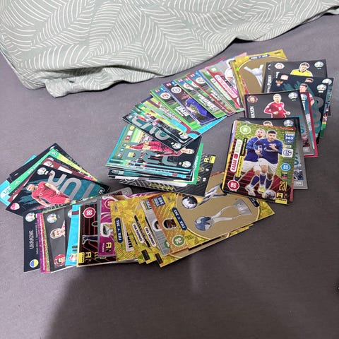 Samling af fodboldkort med forskellige mærker og spillere. Indeholder Limited Edition kort og standardkort i forskellige designs og farver. Kortene kan bruges til samling eller spil.