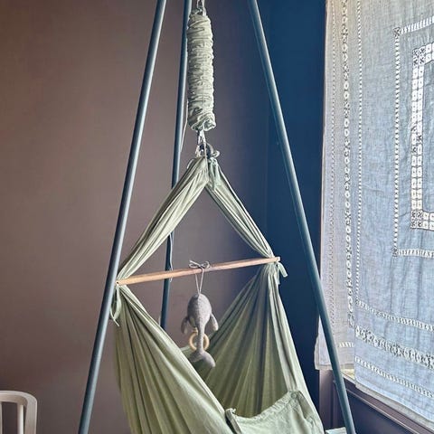 Vi sælger vores Moonboon slyngevugge, som vi har brugt til begge børn ( ca 2 måneder pr barn )