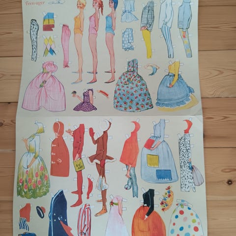 Christel Ca. 11-12 cm høj med rottehaler og 12 stk. tøj, de 7 stk. ikke klippet ud. Selve dukken er heller ikke klippet ud! Kommer fra røgfrit hjem uden dyr. Kan sendes eller hentes!