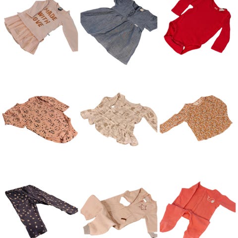 Super fin tøjpakke med 15 dele i str. 62. Velholdt uden huller eller pletter.