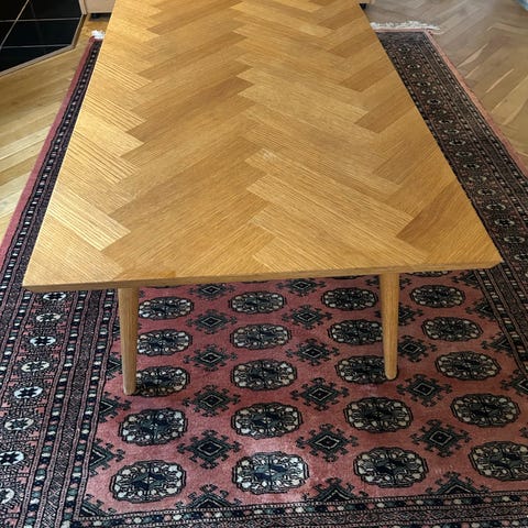 Vores smukke sofabord søger nyt hjem, da det desværre er for stort, til vores nye hjørnesofa, som ikke er særlig stor .