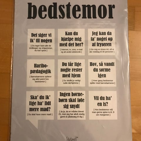 Plakaten viser en række humoristisk og genkendelige citater og sætninger der ofte forbindes med bedstemødre(mormor) i en dansk kontekst i A-5 størrelse,rammen måler22,5cm.•18cm.👵helt ny.