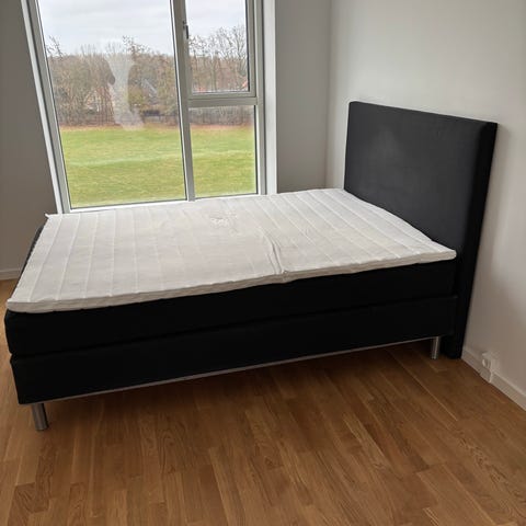 Jysk eller Myhome kontinentalseng med topmadras kun brugt som gæsteseng, 3 år gammel.