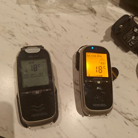 Sælger vores babyalarmer fra Neonate, BC-6500D, som er med sleeptimer-funktion og talk-back, så man kan tale tilbage til baby😊 De er blevet brugt til 1 barn, blevet passet rigtig godt på og er i flot stand næsten uden brugsspor og holder meget længe pr. opladning👍🏼