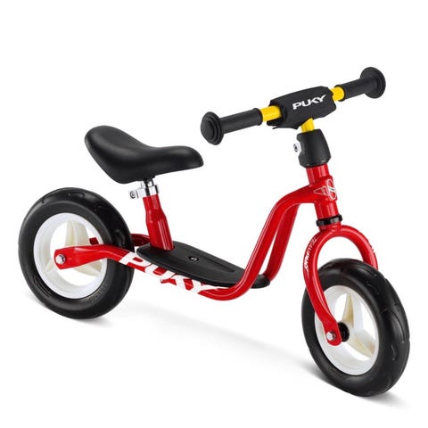 Lav indstigning og trinbræt, støttefod og skumhjul af høj kvalitet - let at styre for små nye cyklister.