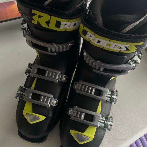 Roces skistøvler til unisex i sort og hvid farve. Størrelse 22.5 - 25.5 der svarer til skostørrelse fra 35,5 til 40. Kan indstilles når barnet vokser. Vores dreng er vokset ud af dem.