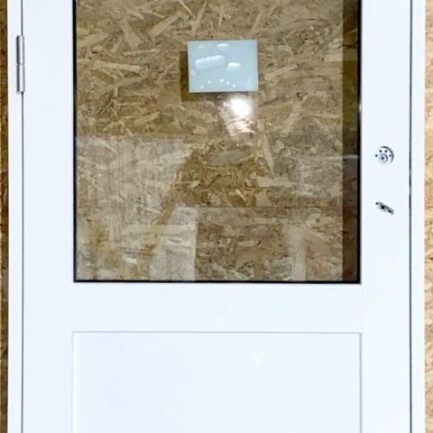 Ny og ubrugt facadedør i træ med 3 lags lavenergiglas – lavt bundstykke – Højre indadgående.