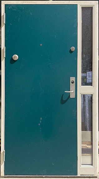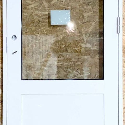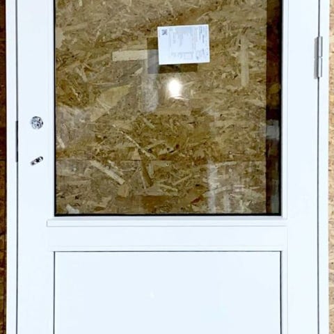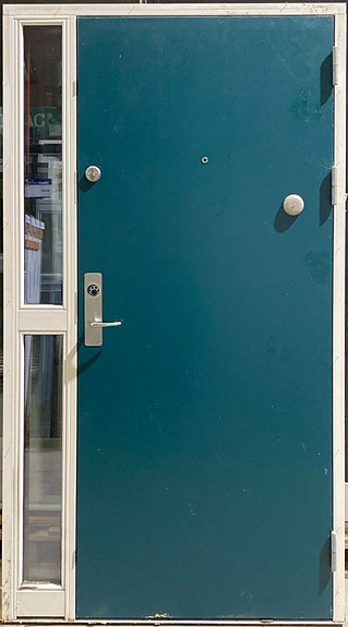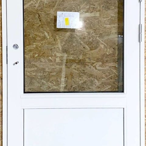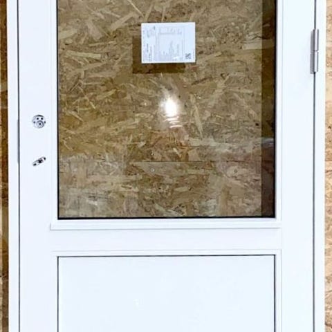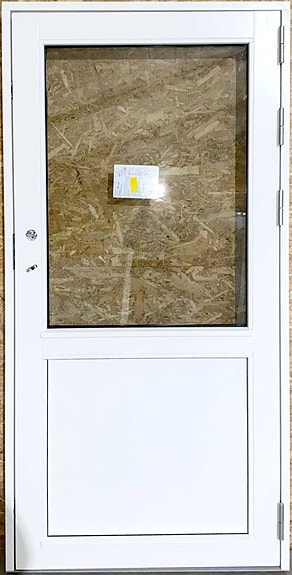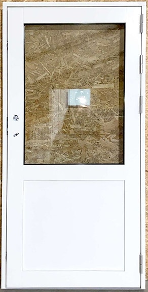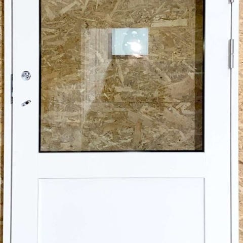 Ny og ubrugt facadedør i træ med 3 lags lavenergiglas – lavt bundstykke – venstre udadgående.