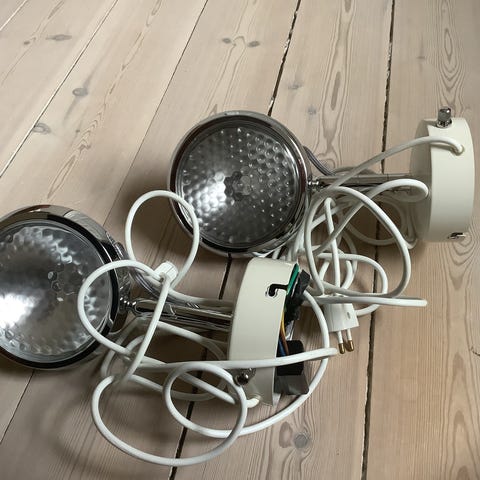 Ledning, ny og helt hvid, ca. 2 m til hver lampet med tænd/sluk kan medfølge.