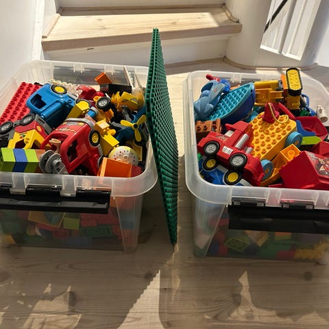 LEGO DUPLO! To byggepladser og en masse arbejdsmaskiner, togbane og tog der kan kører selv