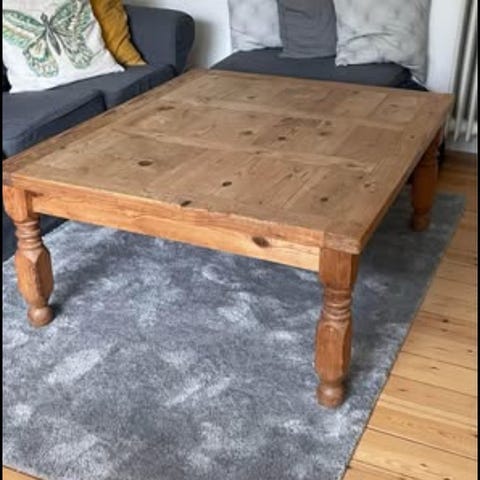 Solidtbord, men lidt mærker i bordplade. Kan slibes
