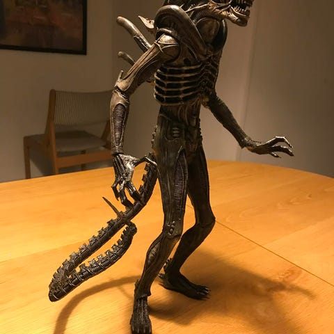 Til figuren følger: 6 hænder, 4 stave, 2 mouthpieces, 1 baggrund, 1 diorama gade, 1 stander som mangler holderen (kan ses på billede).