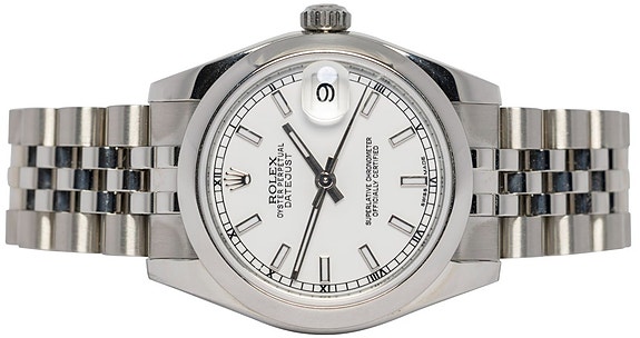 Den karakteristiske hvide urskive med kontrasterende farvede markeringer giver et sporty og dynamisk udtryk.