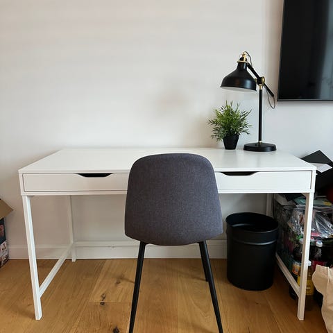 I bought the desk 2 months ago but since i moved in the meanwhile i need another table! It has no flaws or signs of wear:) the measurements are 75 x 60 cm