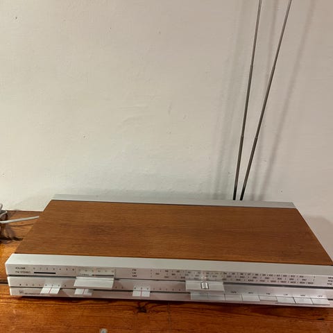 Klassisk dansk receiver fra 1960’erne med glasfront og de originale trykknapper. Et flot stykke B&O-design med masser af retro charme.