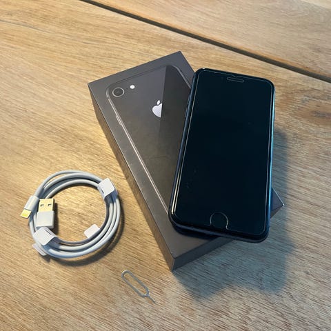 Velfungerende iPhone 8, 64 GB. Model A1905. Space-grey. Lader og ladekabel medfølger ikke. Flot stand. Befinder sig i Aarhus. Kan sendes med GLS til pakkeshop for 50 kroner.