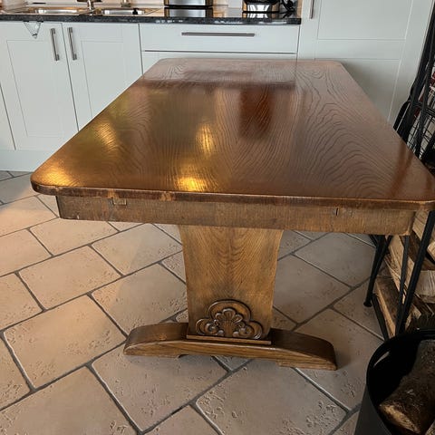 Spisebord, fyrretræ, Smukt gammelt bord i fyr, kan slåes ud, til i alt 230 cms længde, ellers er længden 130 cm, b: 80 cm h: 76 cm.